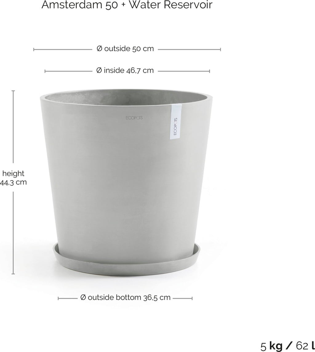 Ecopots Amsterdam Water Reservoir - White Grey, Ø 50 cm, H 44 cm