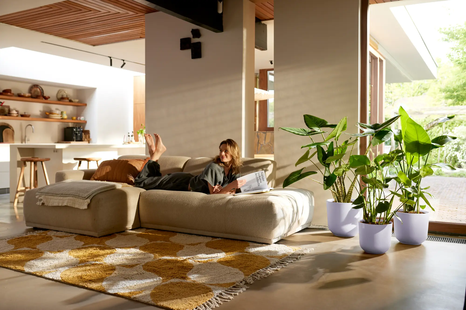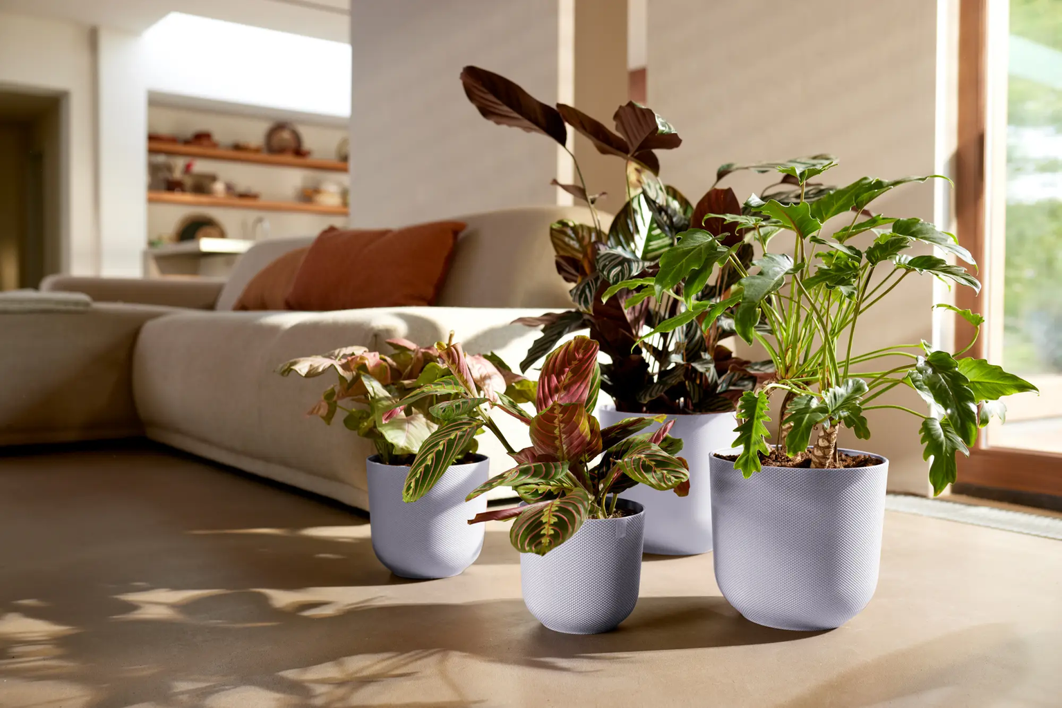 La struttura a rilievo del vaso e i colori eleganti rendono questo vaso di elho un must have assoluto per le tue piante d'appartamento.