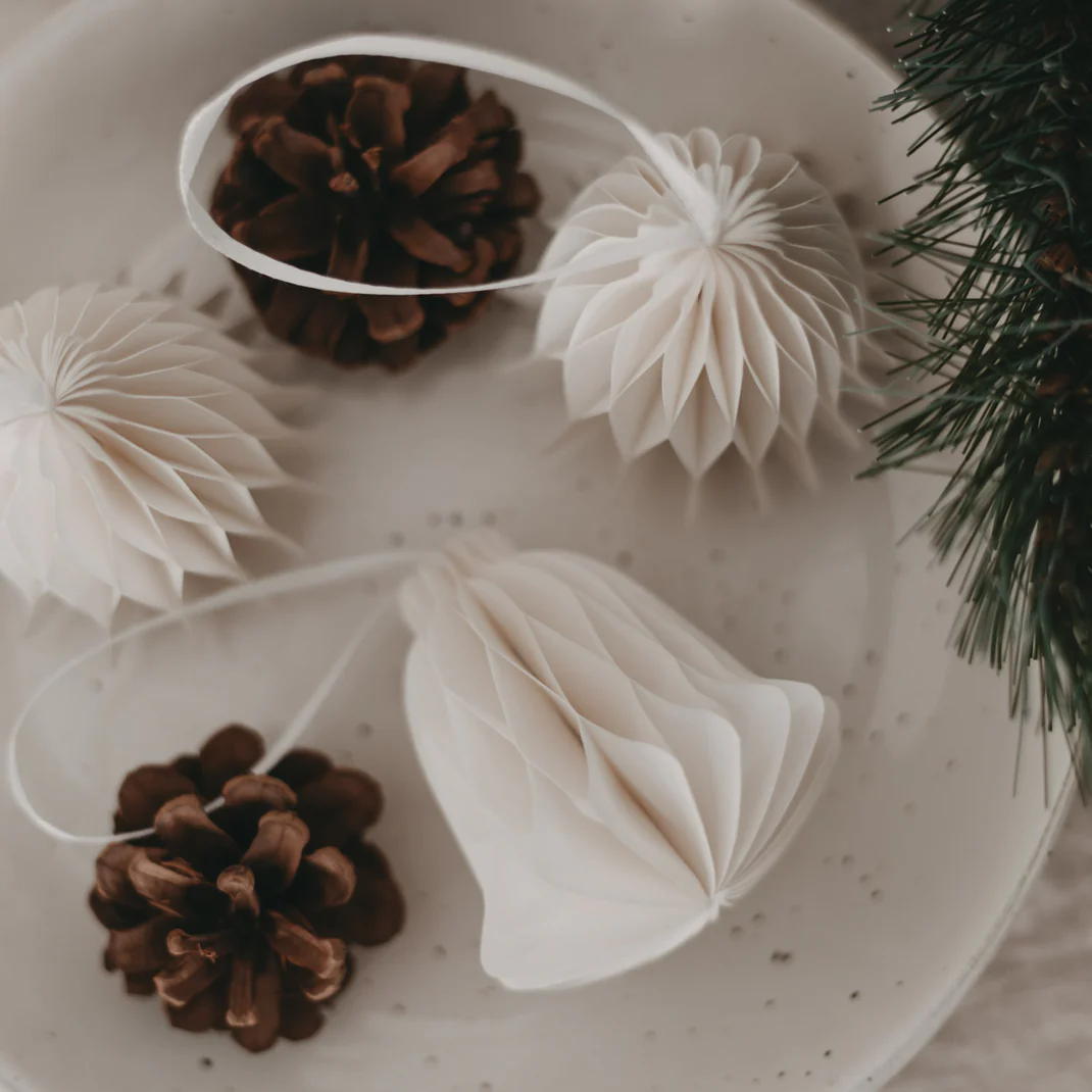 Queste campanelle in carta portano un tocco di naturale eleganza alle decorazioni natalizie. Che siano appese all’albero di Natale, a rami, finestre o pacchetti regalo, donano accenti discreti e raffinati.