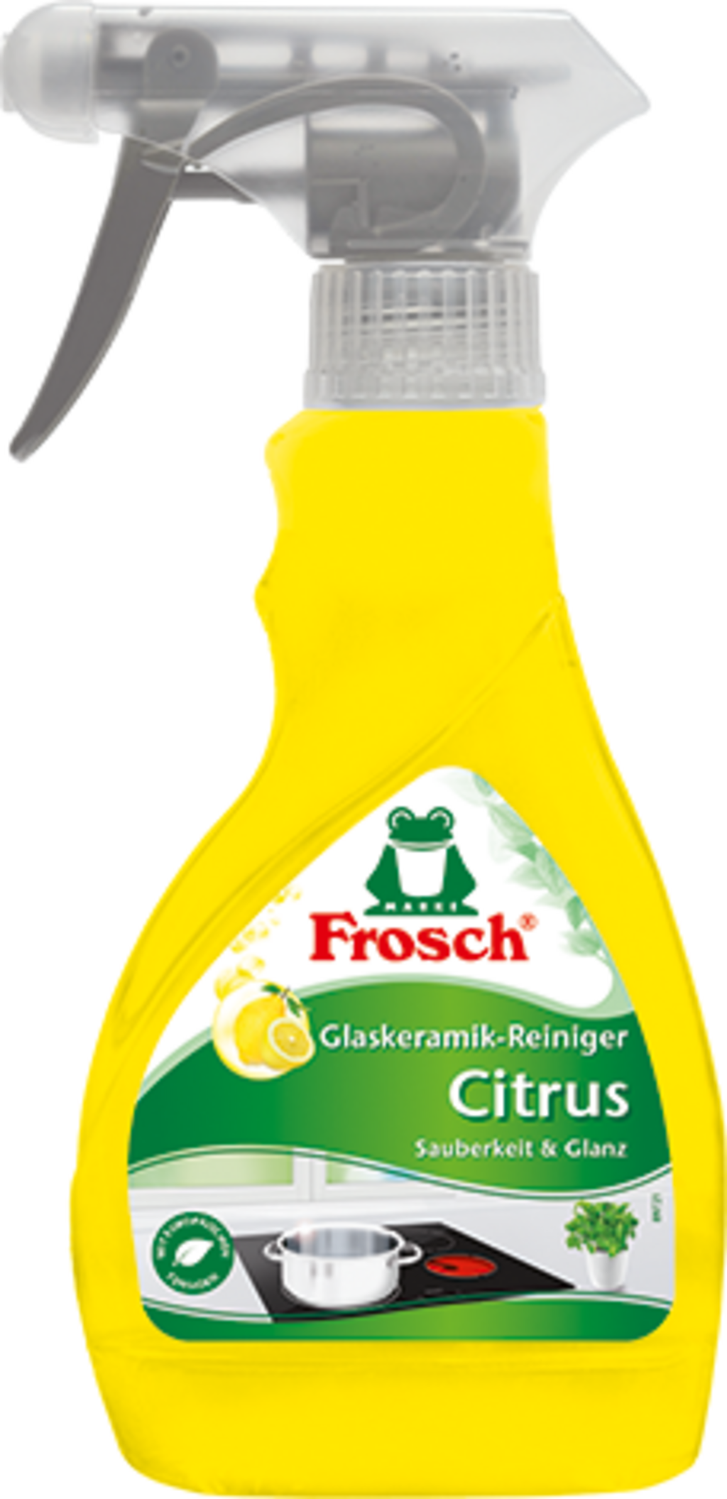 Il Detergente per Vetroceramica - Agrumi di Frosch contiene olio di agrumi sgrassante ed è ideale per rimuovere unto e sporco dai piani cottura a induzione e in vetroceramica. Gli estratti di agrumi che contiene assicurano una pulizia radiosa e un fresco profumo di limone.