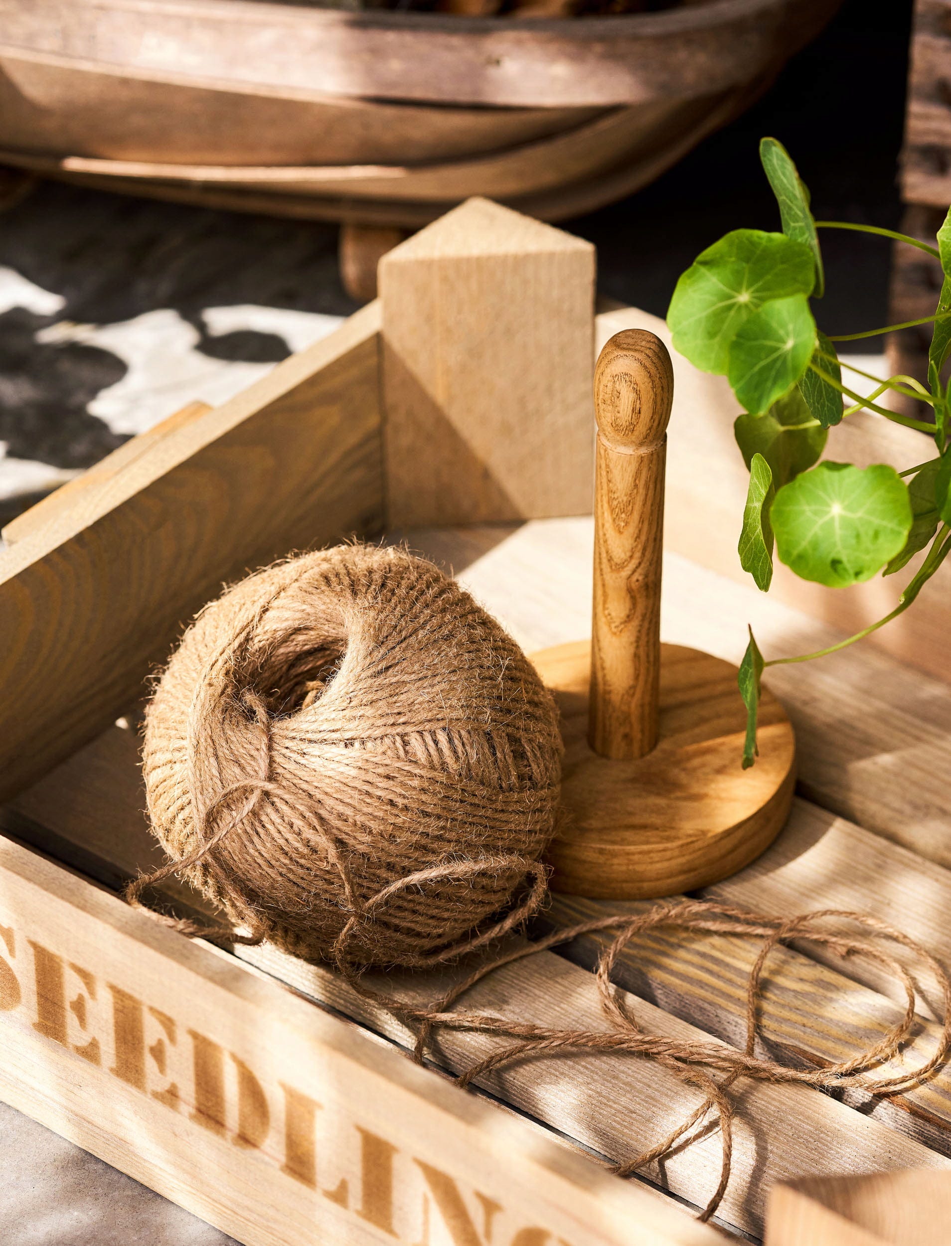 Nessun giardiniere può fare a meno di un buon materiale da legatura. Questo portaspago con rocchetto incluso è un pratico alleato per ogni lavoro in giardino e, grazie al suo design elegante, si inserisce con stile anche su uno scaffale in casa.