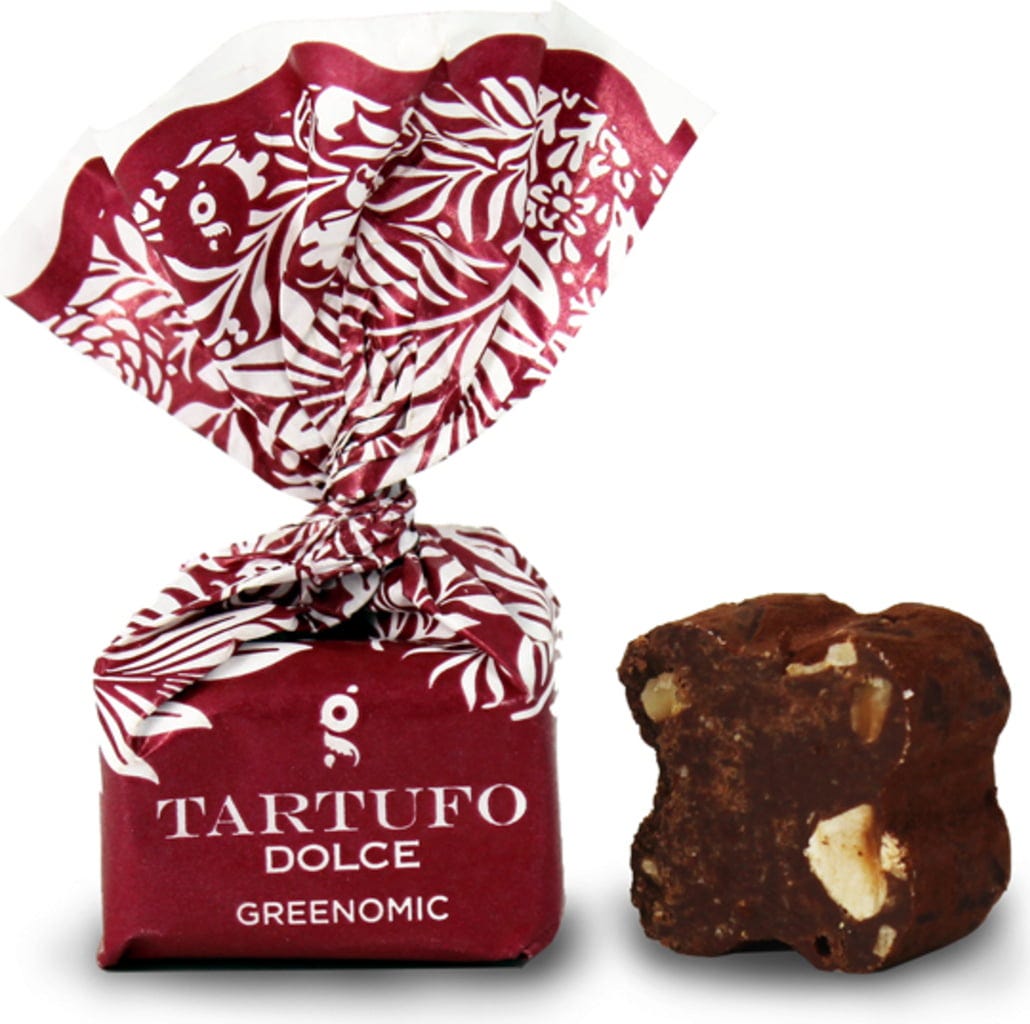 I tartufi dolci di Greenomic sono una delizia a base di finissimo cioccolato fondente arricchito con croccanti pezzetti di nocciola. Una vera coccola per il palato che si scioglie in bocca donando momenti di pura estasi.