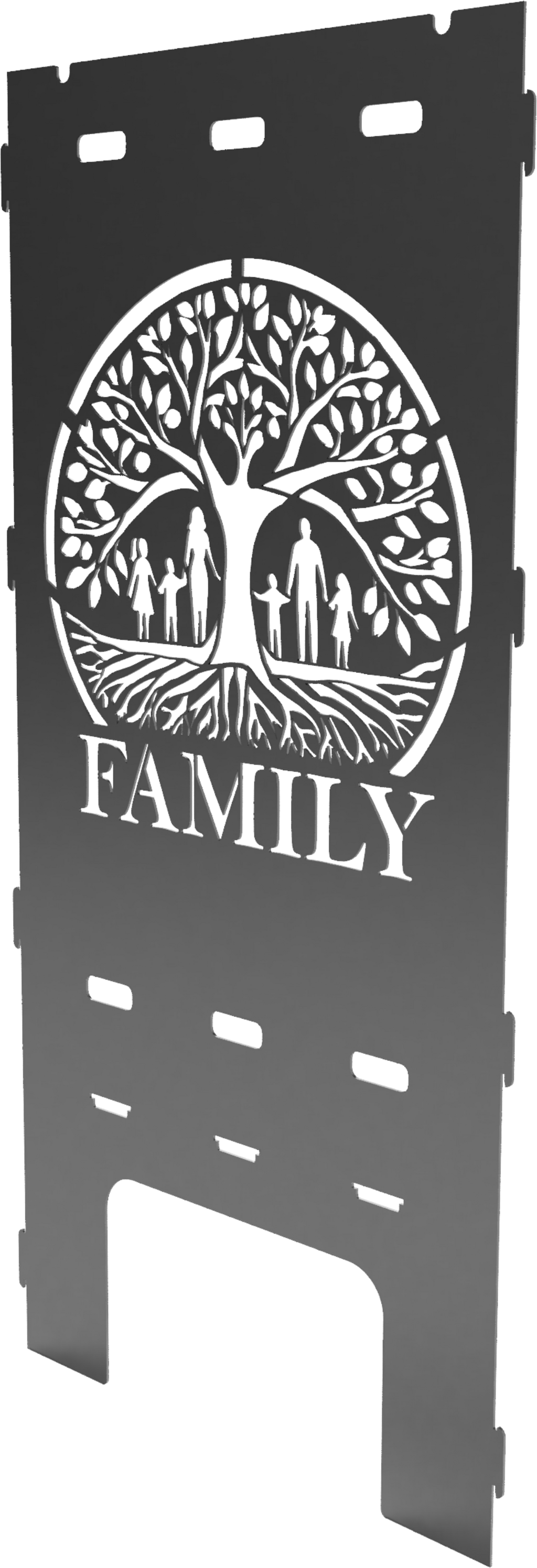 Questo pannello laterale in acciaio colpisce per il suo design realizzato con cura, raffigurante un albero della vita e una famiglia, ideale per coloro per cui i propri cari sono la cosa più importante.