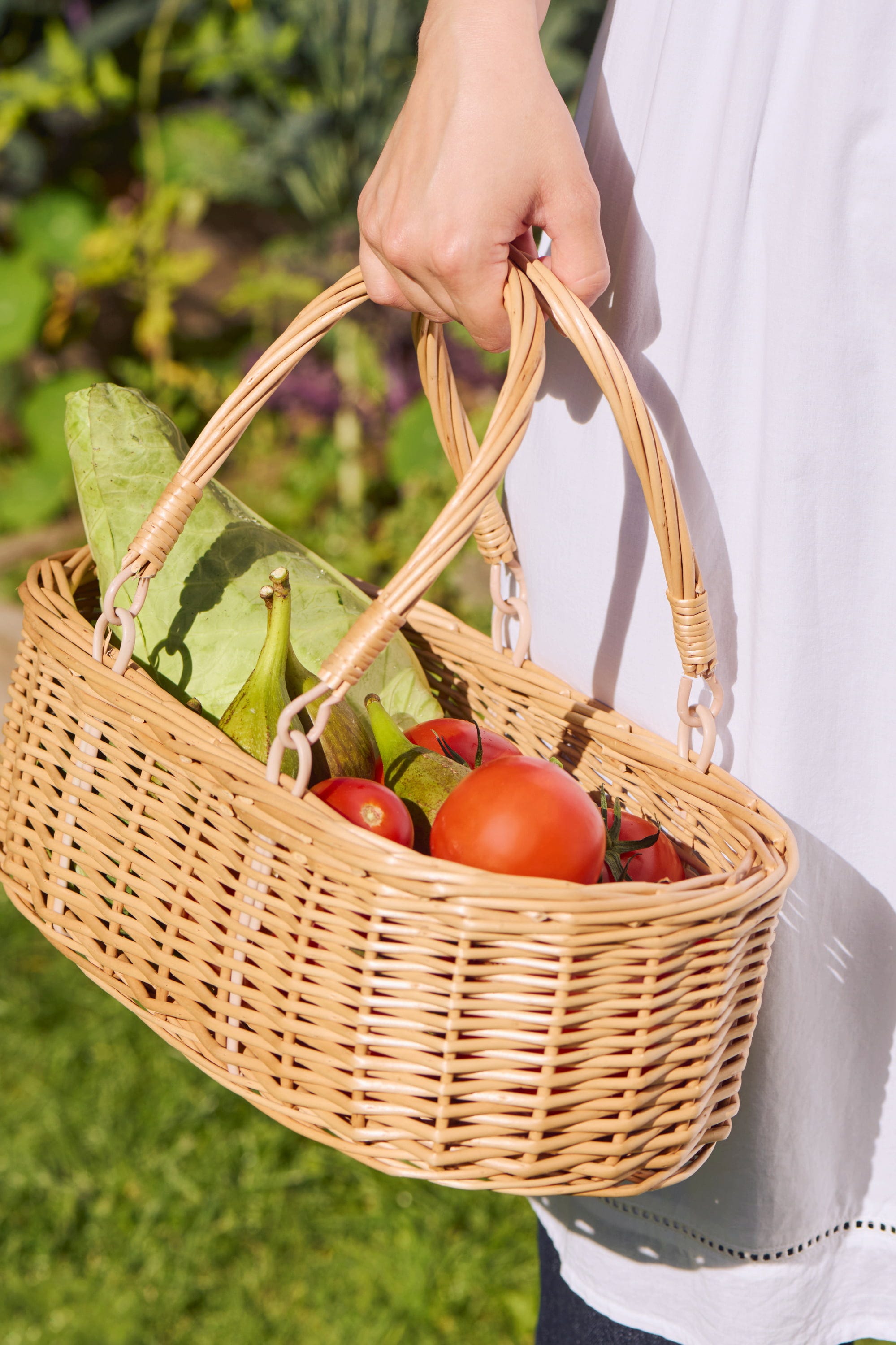 Cesto in vimini naturale dal design classico e dalla struttura robusta, ideale sia come elemento decorativo con composizioni floreali sia come pratico aiuto in casa e in giardino.
