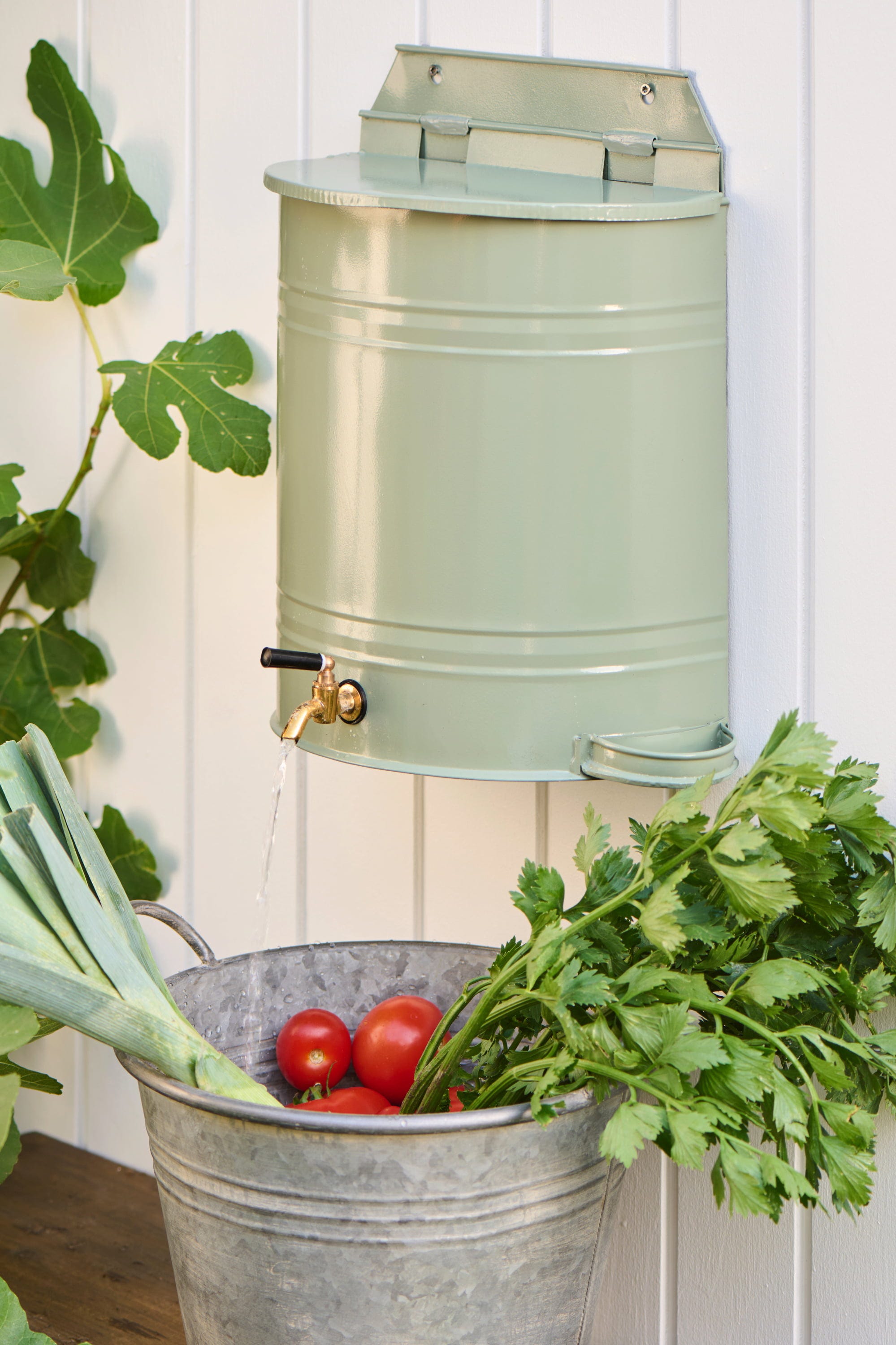 IB Laursen Contenitore d'Acqua da Parete con Rubinetto e Portasapone - 10,5 L, Verde chiaro