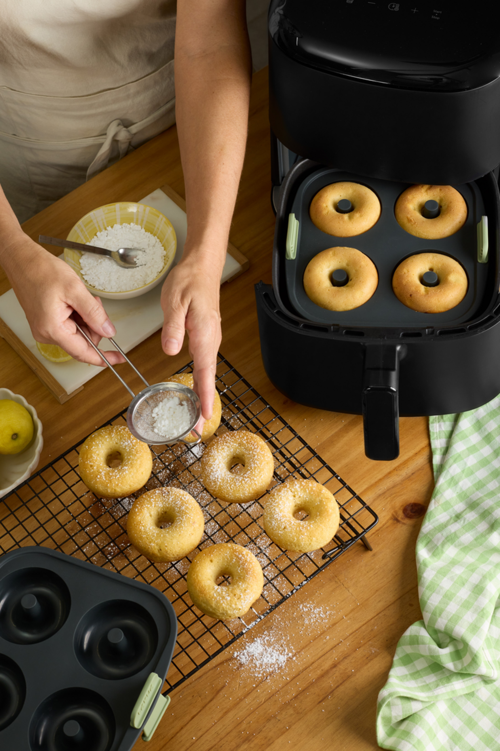 Prepara deliziose ciambelle direttamente dalla tua cucina! Nessun problema con questo pratico stampo per friggitrice ad aria.