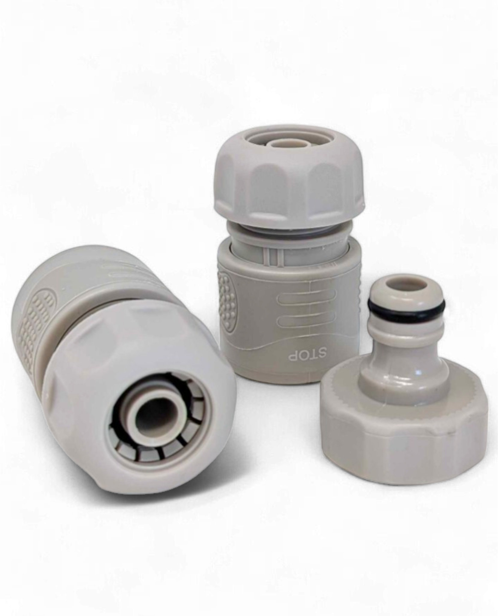 Questo pratico ed elegante set permette un collegamento sicuro e anti-goccia al tubo da giardino. È un vero e proprio must-have per l'irrigazione del giardino, rendendo l'irrigazione quotidiana molto più semplice.