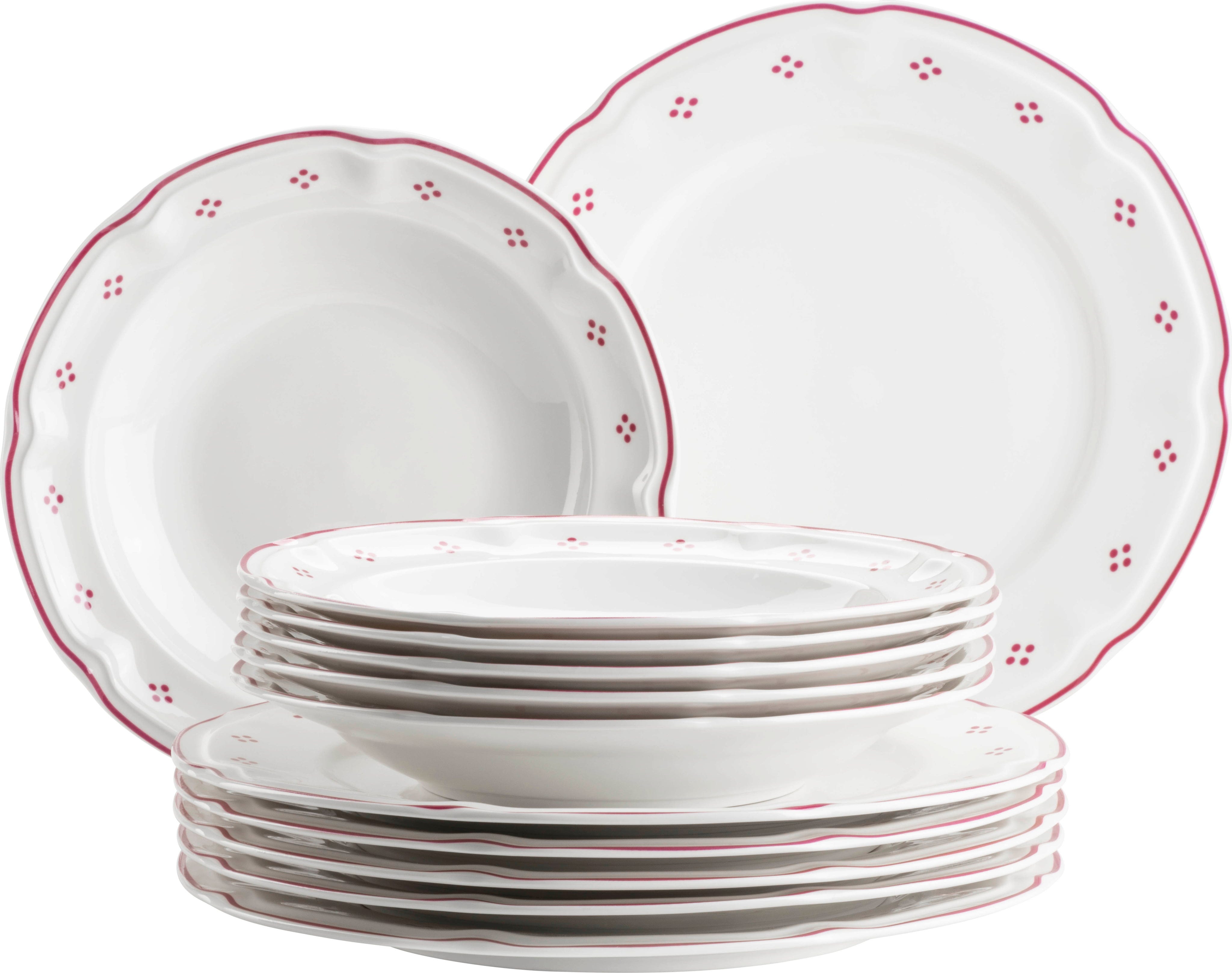Mäser Lova - Servizio da Tavola - 12 Pezzi, Bianco/Rosso