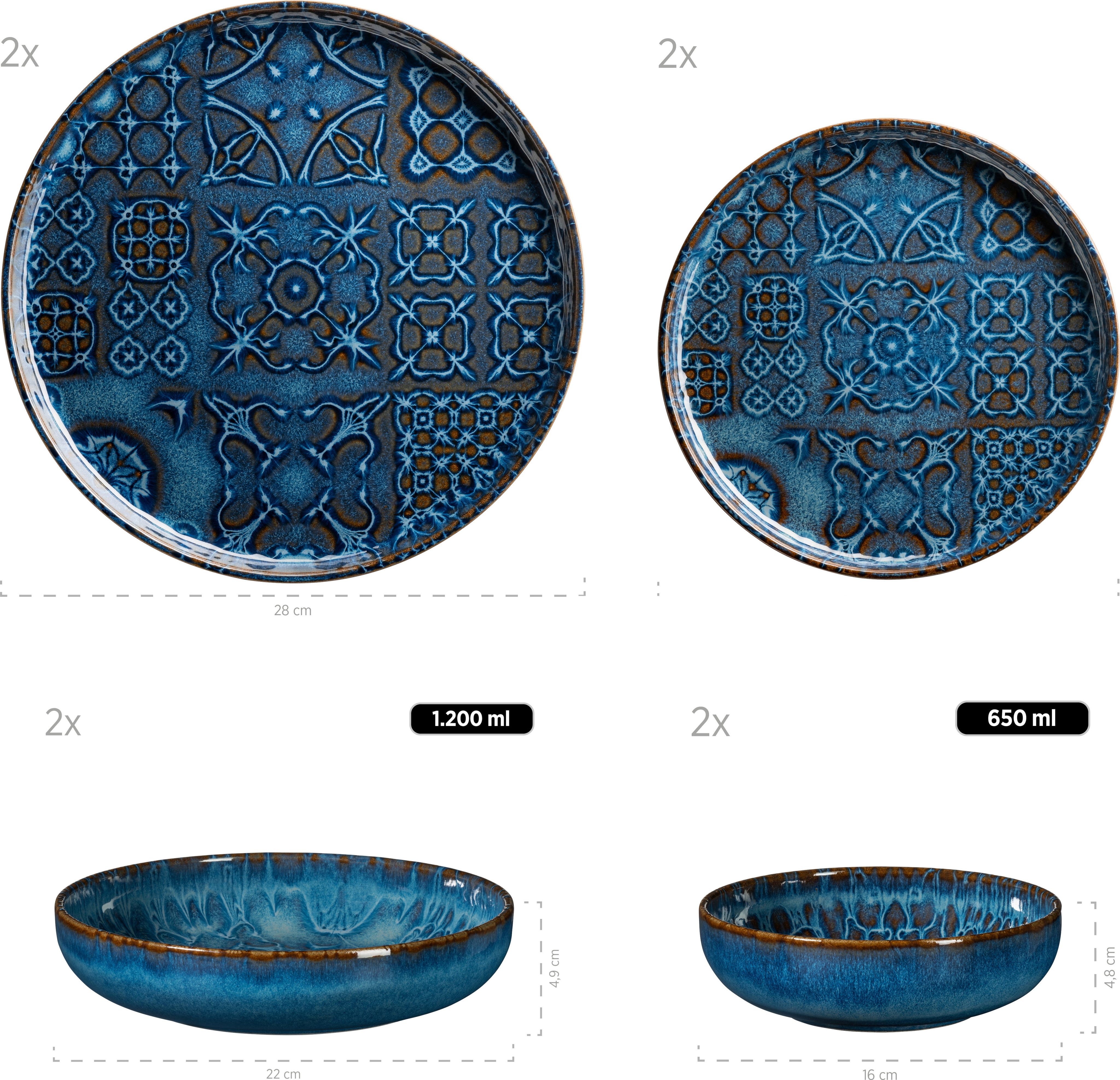 Mäser Traditional Tiles - Servizio da Tavola - 8 Pezzi, Blu