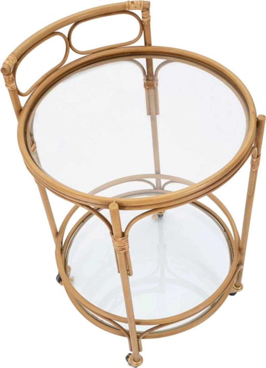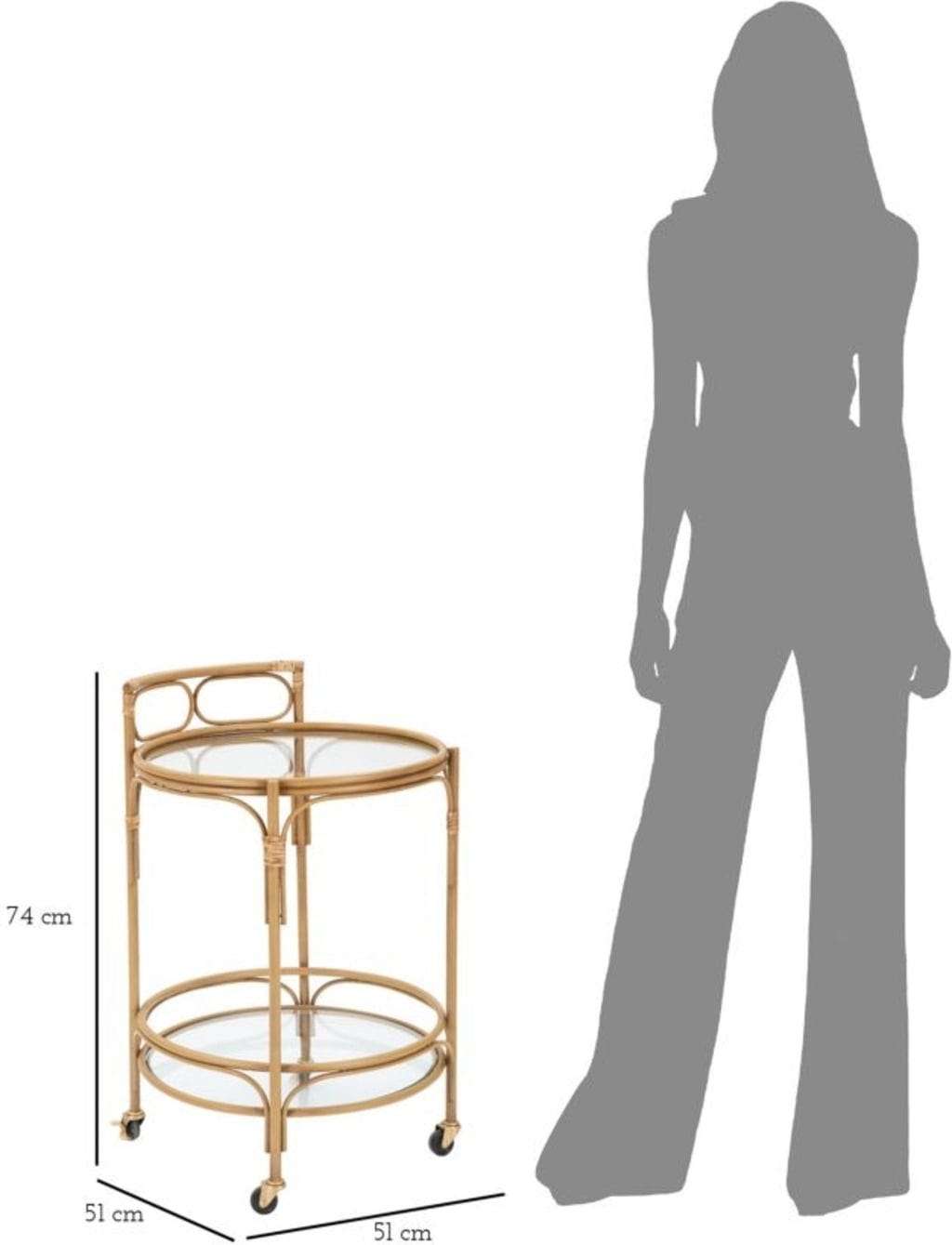 Il design è completato da due ampi ripiani in vetro trasparente, che lasciano intravedere le sinuose strutture metalliche decorative. L'arco superiore funge da comoda maniglia, mentre le quattro ruote scorrevoli assicurano la massima flessibilità. Per una sicurezza extra, le ruote sono dotate di freni integrati, così bevande e snack restano sempre stabili. Come bar mobile o tavolino d'appoggio di classe, Panama unisce funzionalità ed estetica senza tempo.