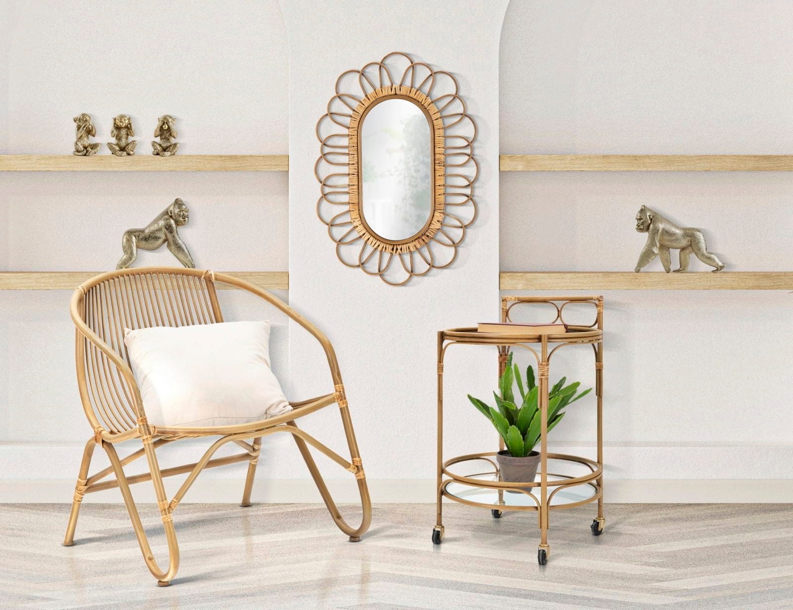 Esalta il tuo talento da perfetto padrone di casa con il carrello di servizio Panama rotondo di Mauro Ferretti. Questo elegante carrello in metallo conquista con la sua raffinata finitura effetto rattan, che dona all'ambiente una nota calda e naturale.
