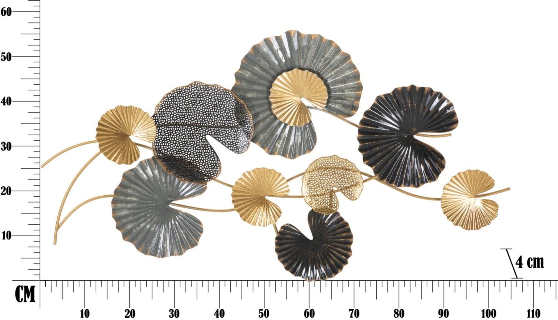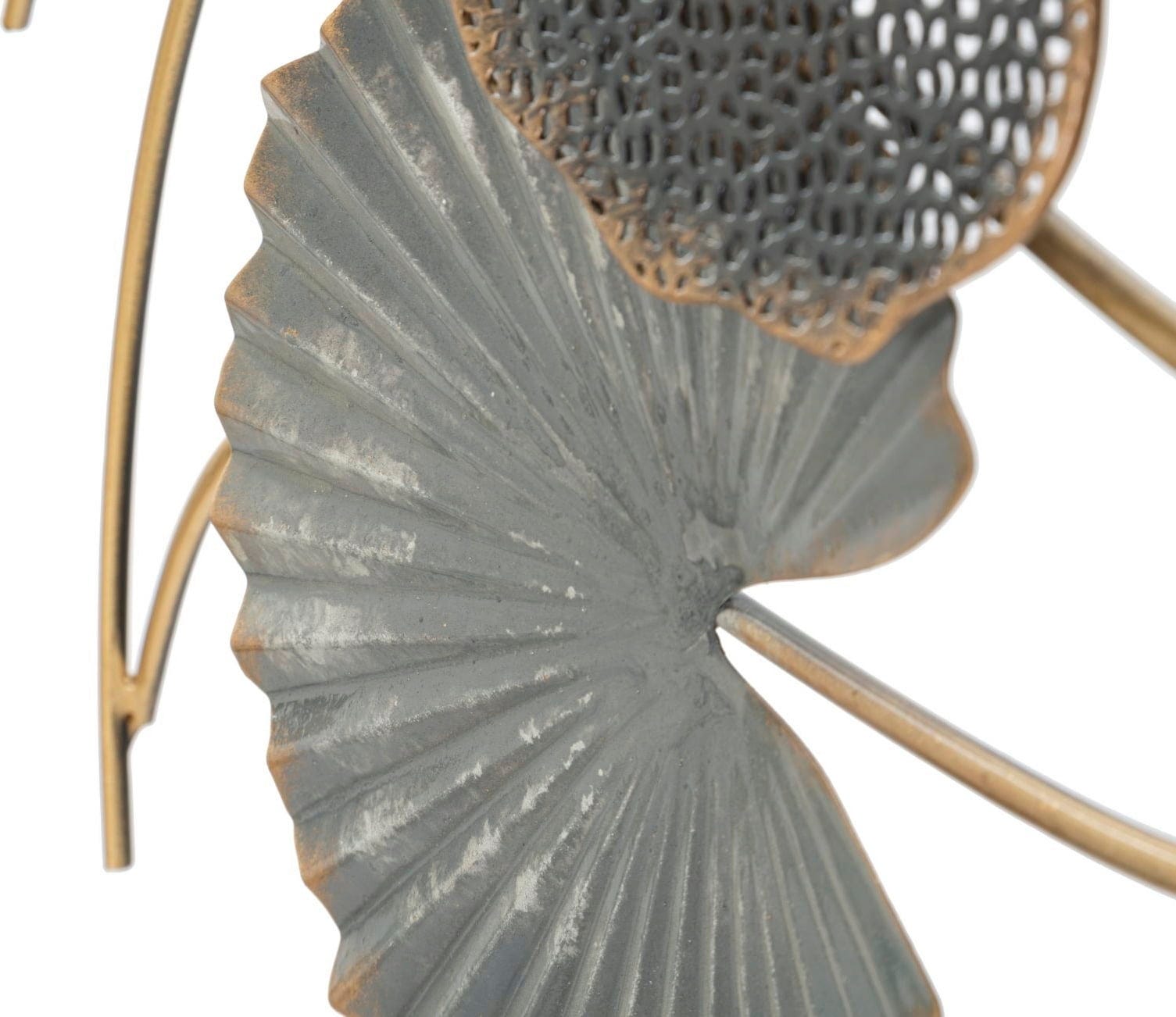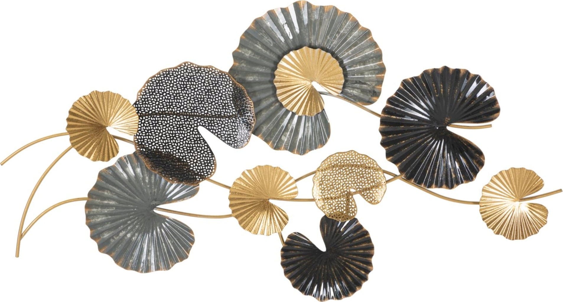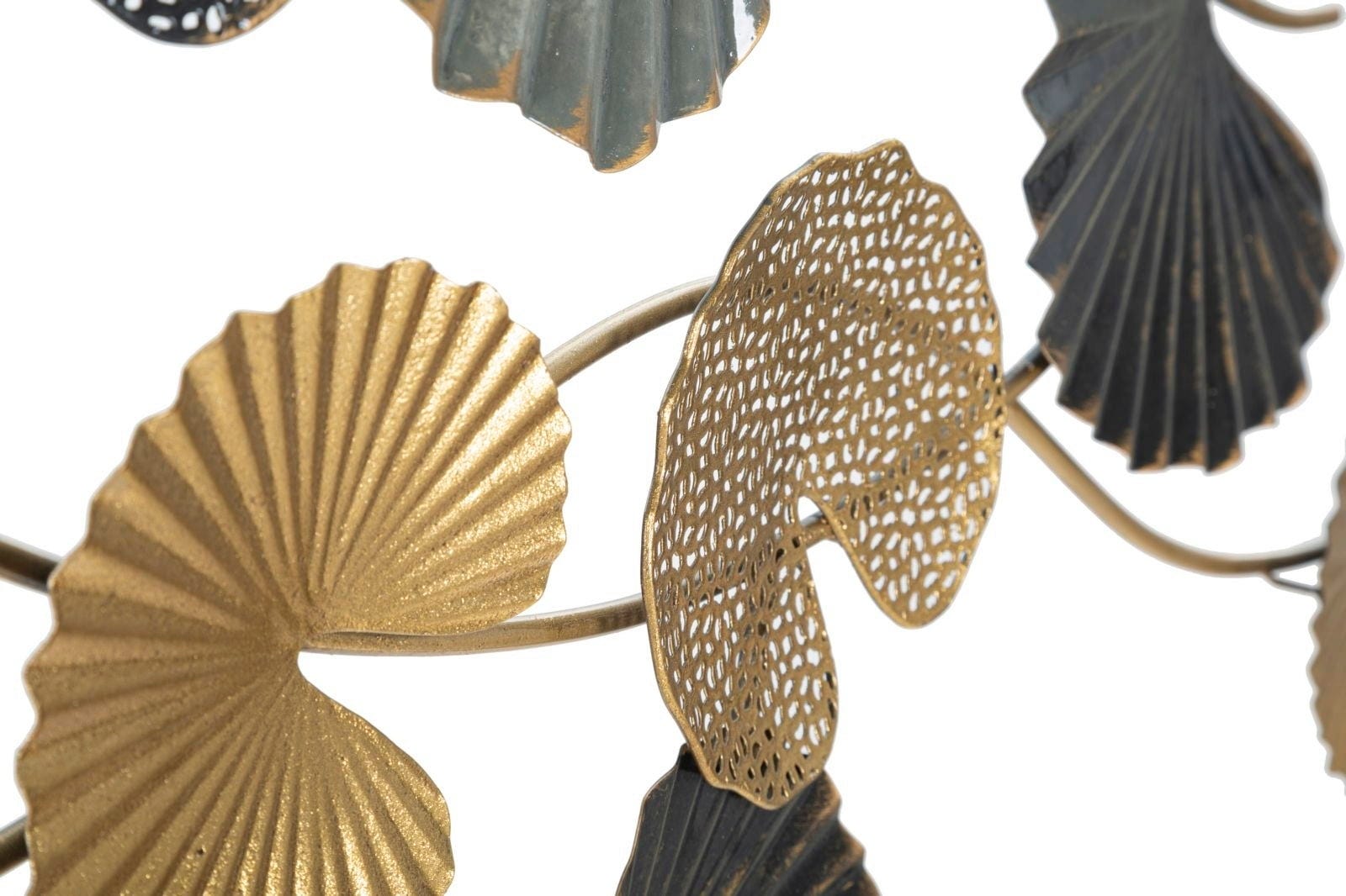 Scopri una nuova dimensione di wall decor con la decorazione da parete Web -B- di Mauro Ferretti. Questo pannello 3D in metallo porta in casa una dinamica fluida grazie alla disposizione orizzontale e ondulata. Il design colpisce con elementi a foglia disposti a ventaglio, in un raffinato mix di oro brillante, antracite profondo e leggere trame a griglia.