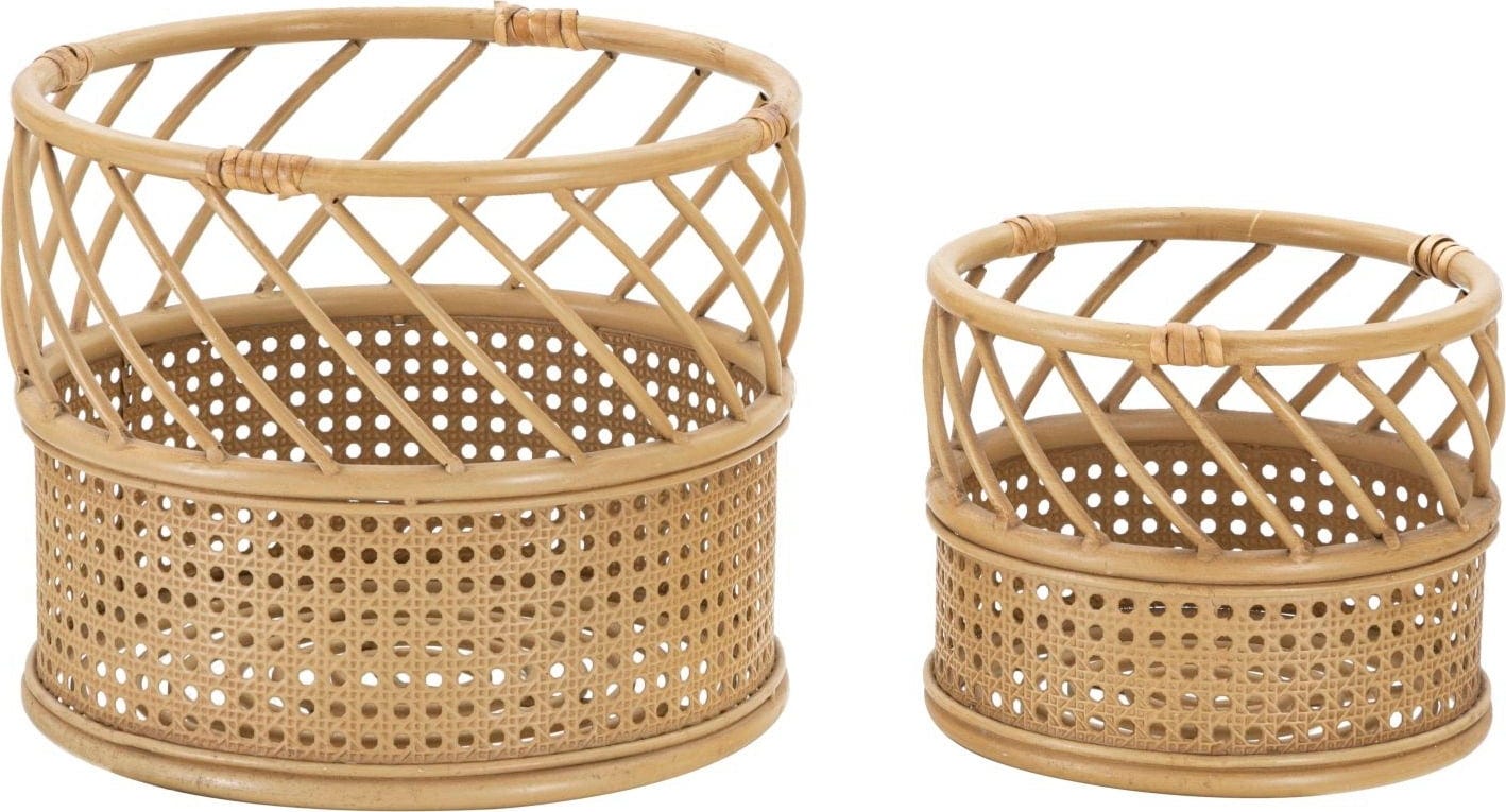 Il dettaglio più distintivo è la lavorazione raffinata nella parte inferiore, che richiama con stile il classico intreccio “paglia di Vienna”. La parte superiore è completata da un motivo arioso a rombi, che dona al set un look leggero e contemporaneo. In coppia o separati, il duo Panama porta in casa calore naturale e un tocco decorativo ricercato.