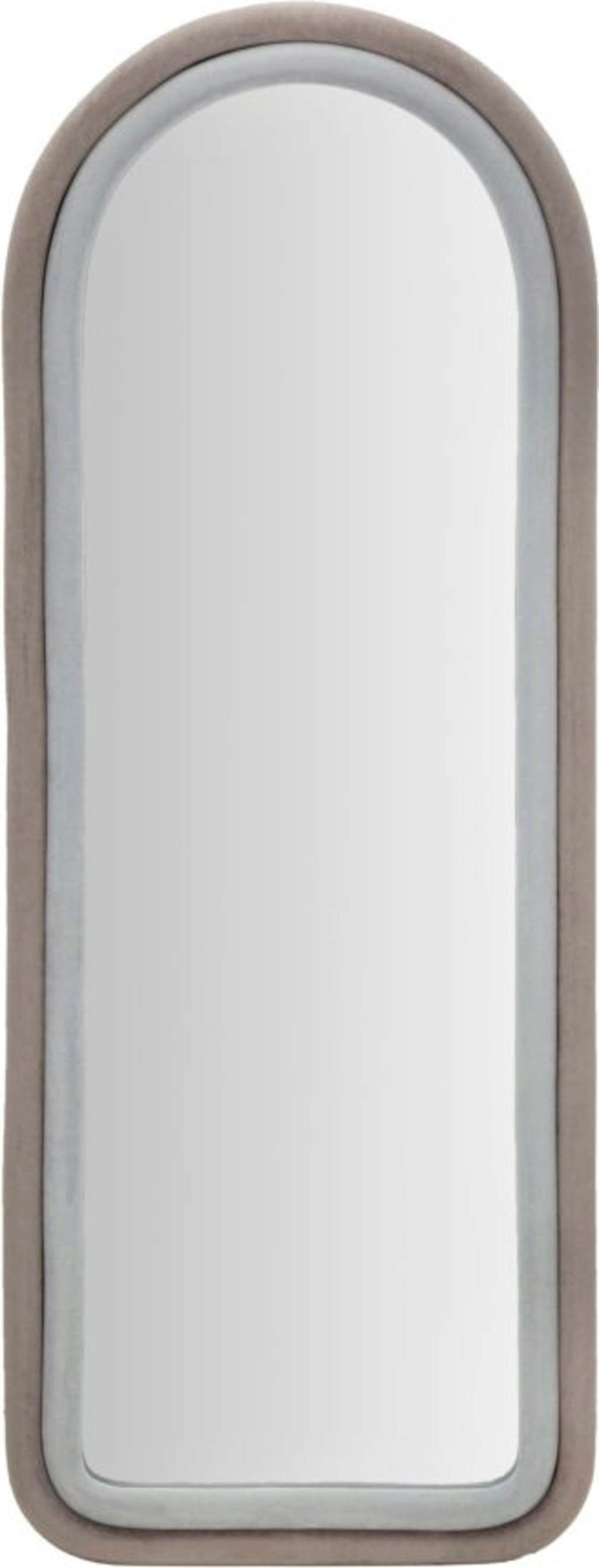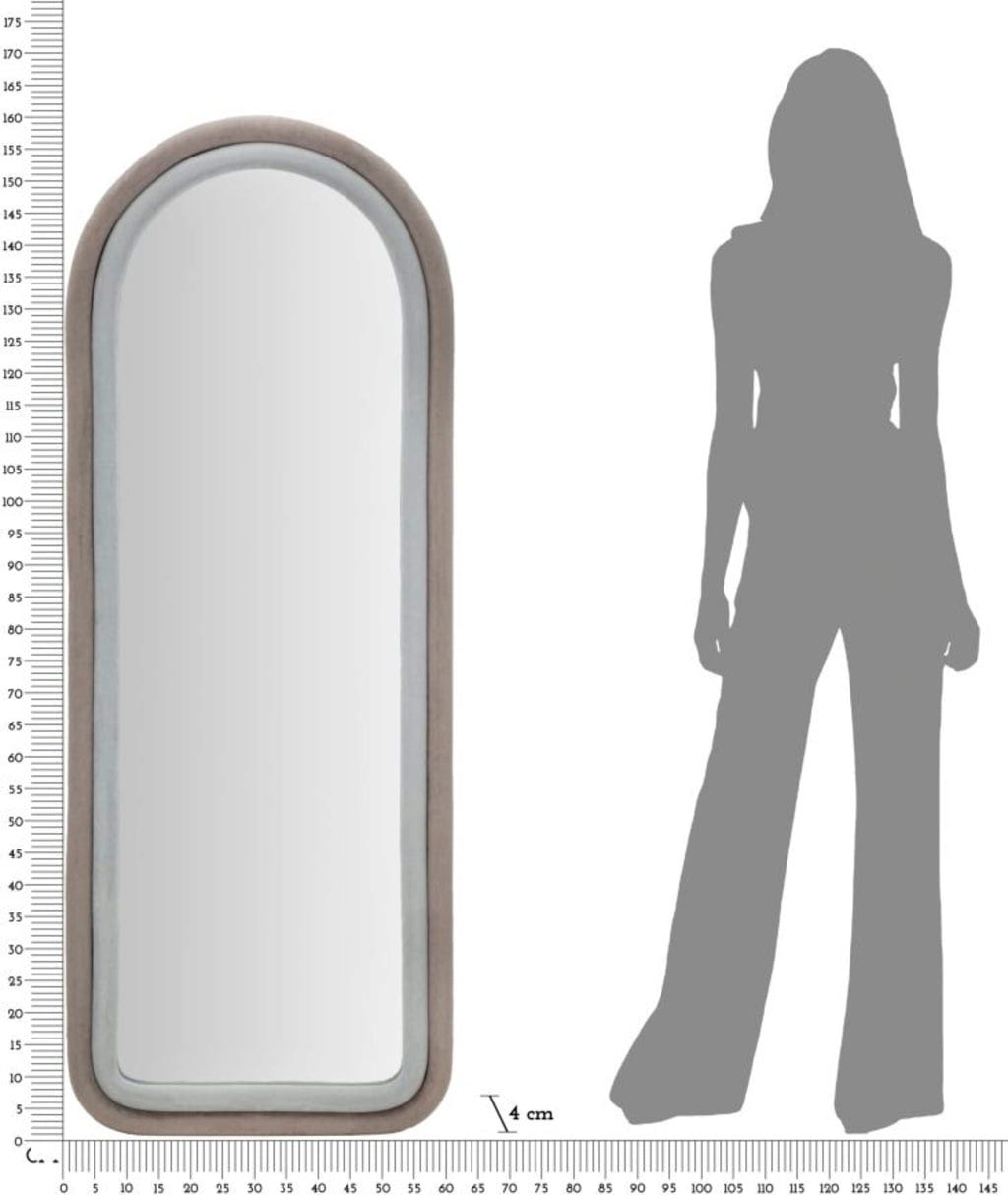 Grazie al colore discreto, lo specchio si inserisce facilmente in camera da letto, nella zona guardaroba o in ingresso. L'incontro tra la superficie riflettente e la cornice leggermente imbottita crea una sensazione di accoglienza e stile, trasformando ogni sguardo allo specchio in un piccolo momento speciale.