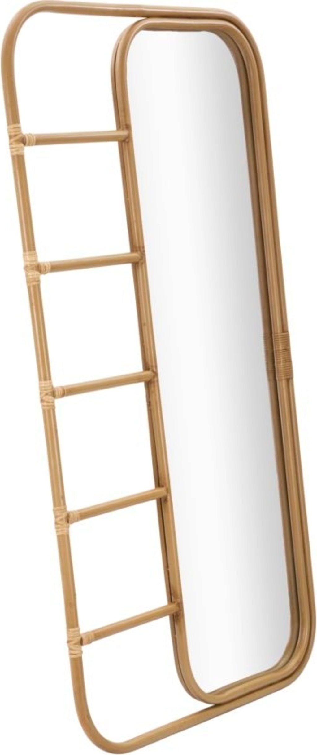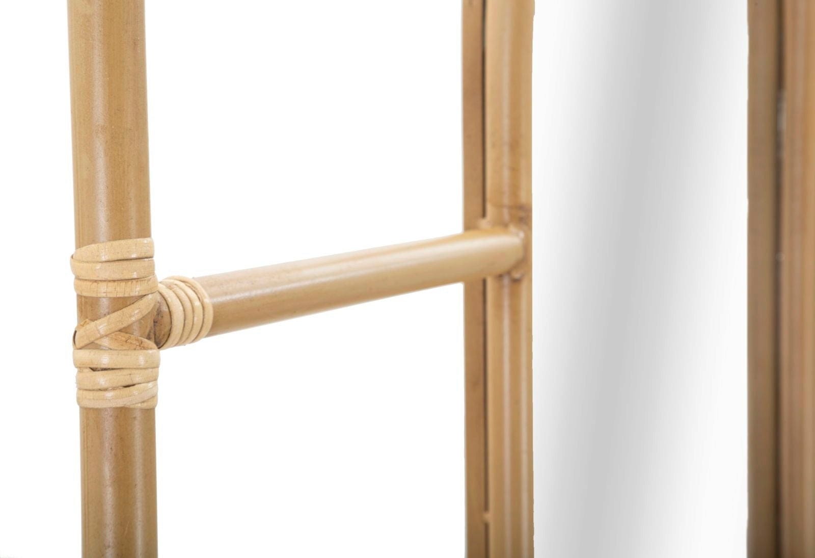 Trasforma la tua routine quotidiana in un momento di benessere con lo specchio da terra Panama di Mauro Ferretti. Questo ampio specchio a figura intera unisce metallo robusto e dettagli caldi effetto rattan, creando subito un'atmosfera naturale e accogliente in camera da letto o in ingresso.