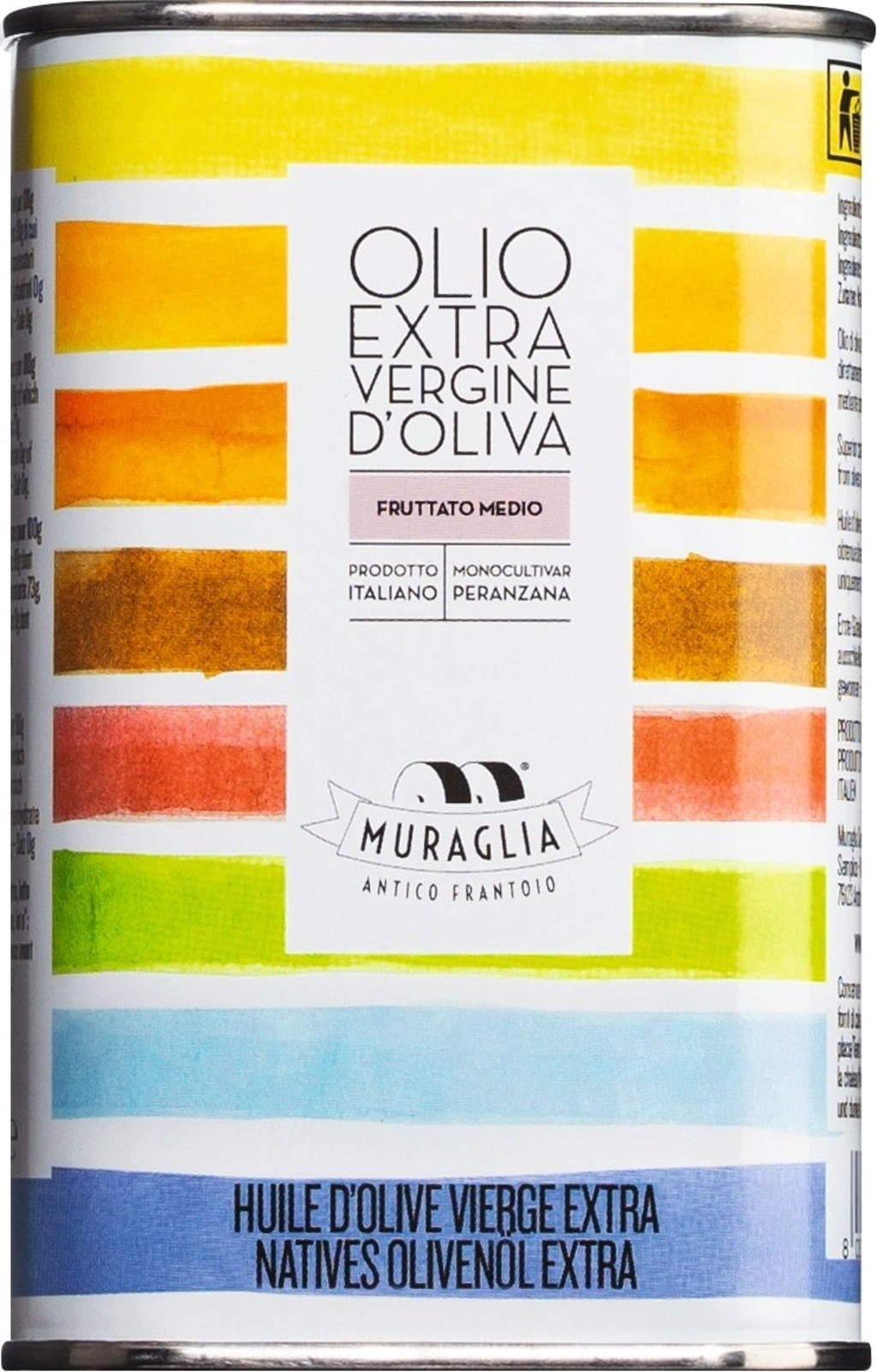 Questo delizioso olio extravergine di oliva, prodotto in Puglia dalla famiglia Muraglia impiegando esclusivamente olive Peranzana, non solo sorprende per il suo sapore, ma anche per la variopinta confezione, così bella da sembrare quasi un peccato regalarla.