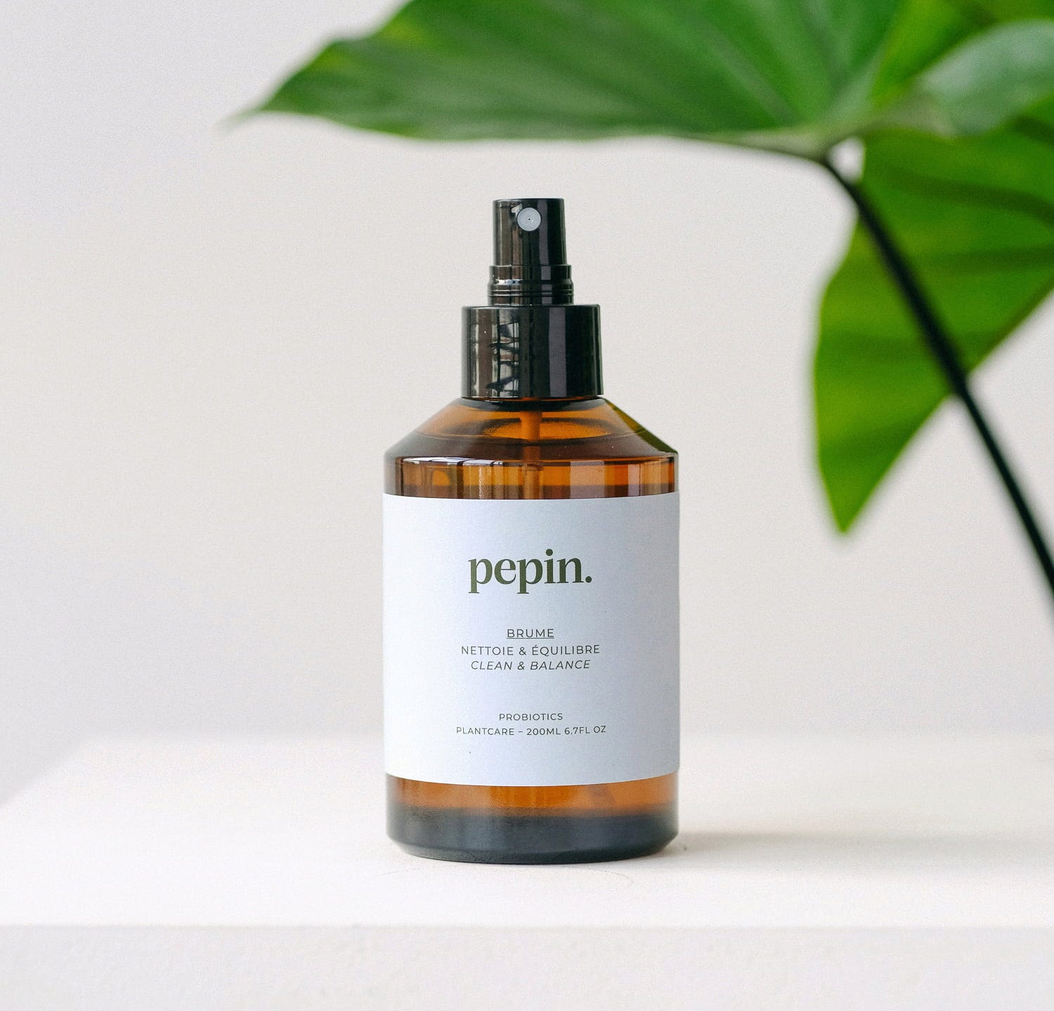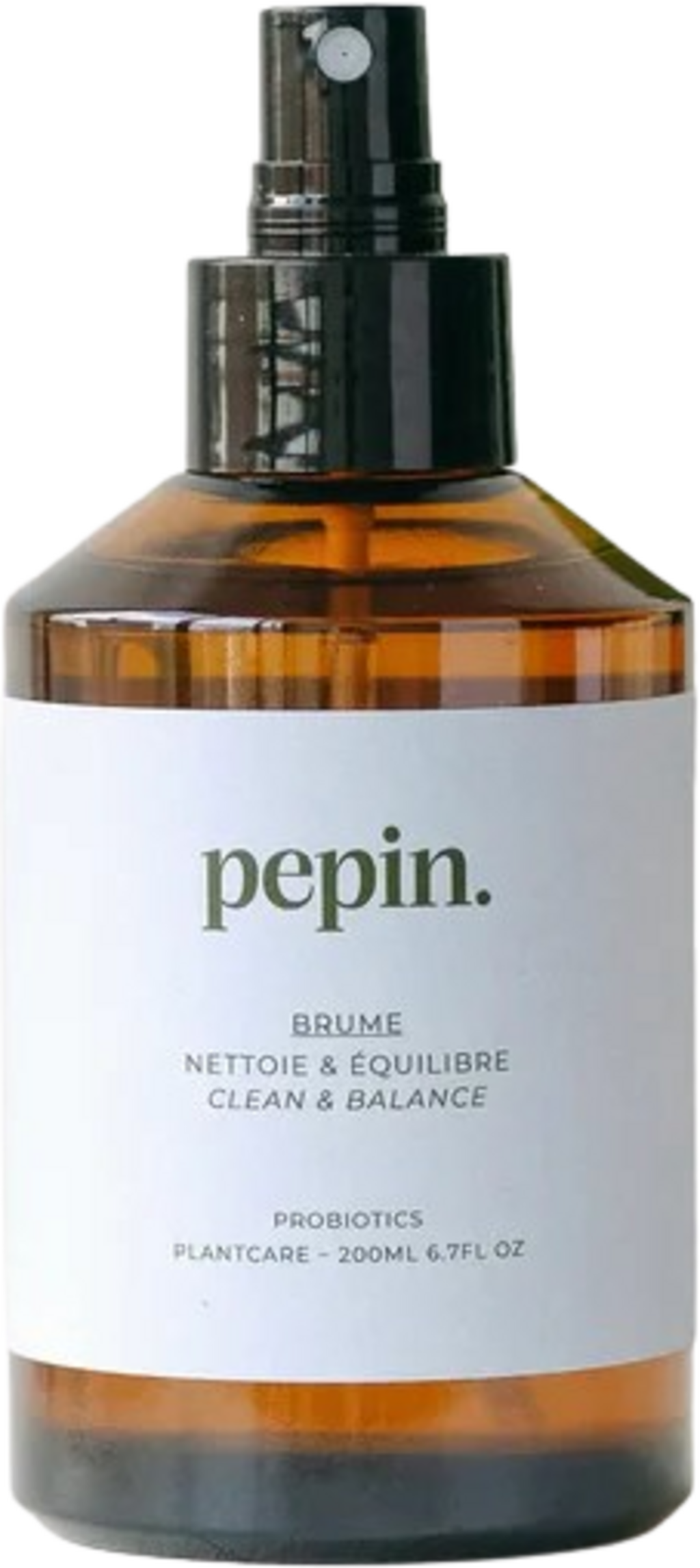 Uno spray per idratare e pulire le piante d'appartamento. Cleaning Brume Spray di Pepin è realizzato con probiotici e principi attivi naturali per contribuire alla vitalità della pianta.