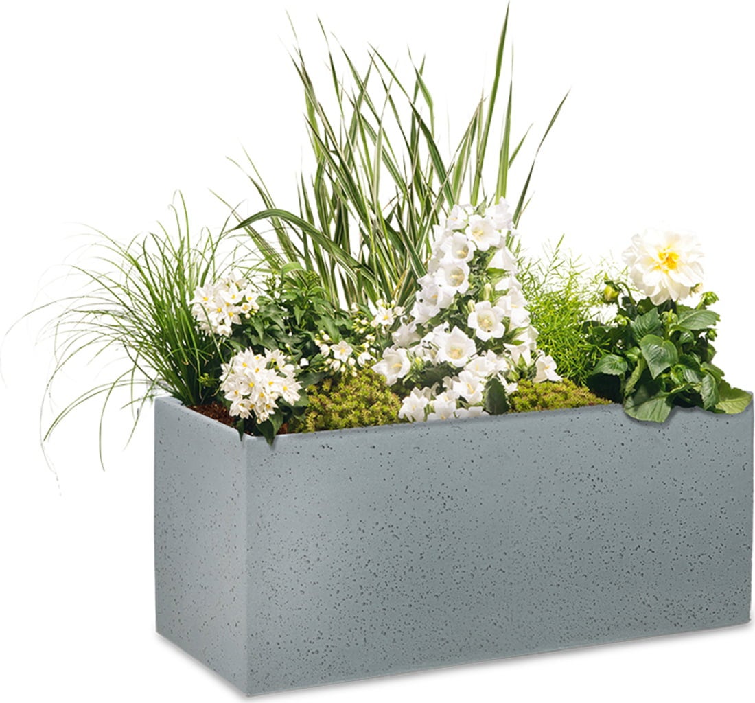 Stai cercando un vaso robusto per esprimere il tuo pollice verde? Allora questo vaso rettangolare è proprio ciò che fa per te! Con il suo aspetto autentico che ricorda il cemento, è un vero punto focale sulla tua terrazza o il tuo balcone e offre alle tue piante la perfetta cornice.
